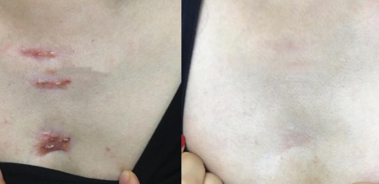 (1)針對各種新舊疤痕,都能得到較好的修復(fù)和改善,見效迅速。